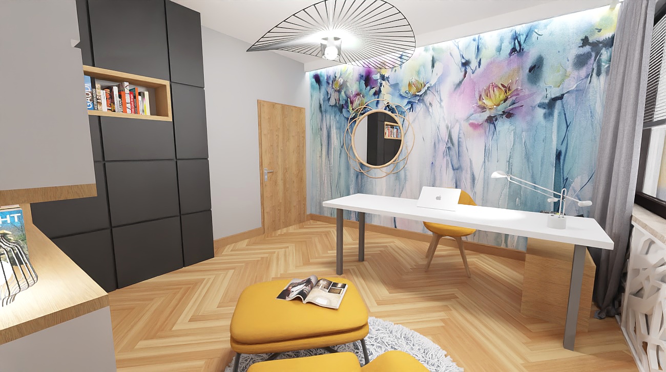 Na pluchę za oknem... oraz na przymusowe pozostawanie w czterech ścianach - przytulne biuro domowe z widokiem na wiosnę. Na rynku dostępnych jest mnóstwo pięknych tapet. Jeśli żaden z gotowych wzorów nie przypadnie Wam do gustu zawsze możecie zaprojektować własny.