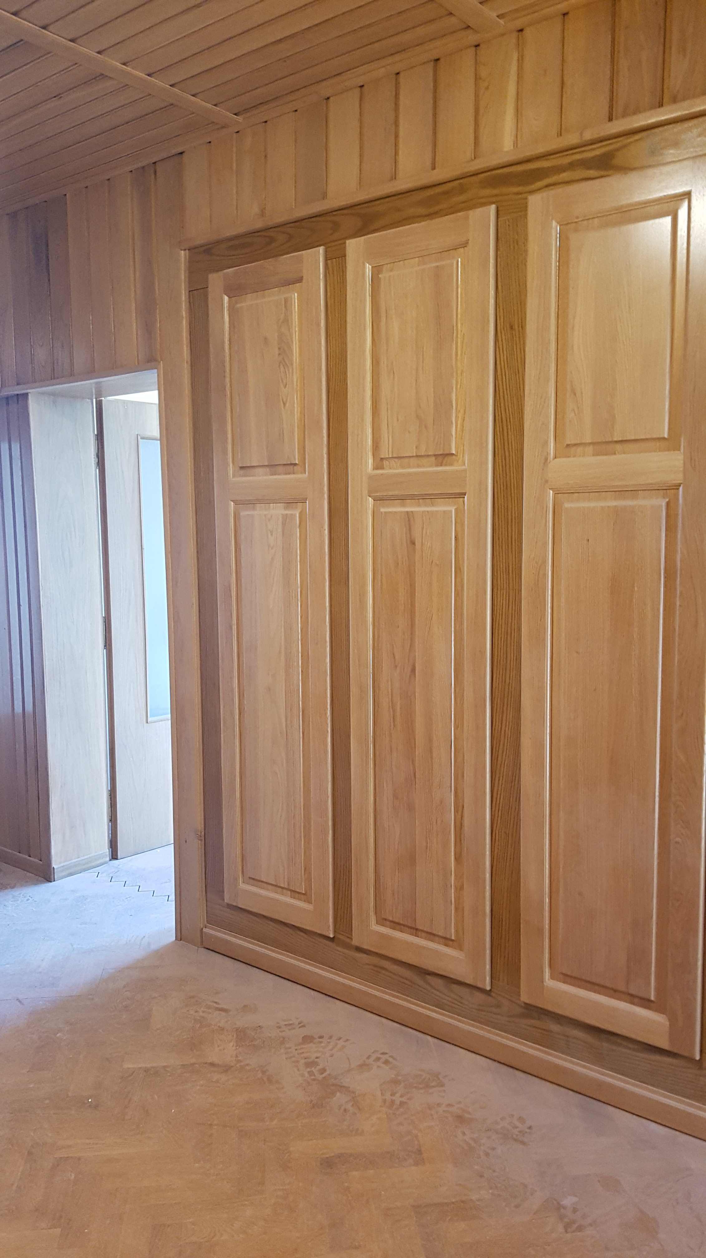 Jak zmienić przestarzały hall w miejsce, gdzie z klasą witamy gości? A w dodatku jesteśmy sentymentalni i nie chcemy pozbywać się w całości pracy naszych rąk sprzed wielu lat... Ratujemy piękne dębowe panele i eksponujemy je by dodać wnętrzu klasy i elegancji..