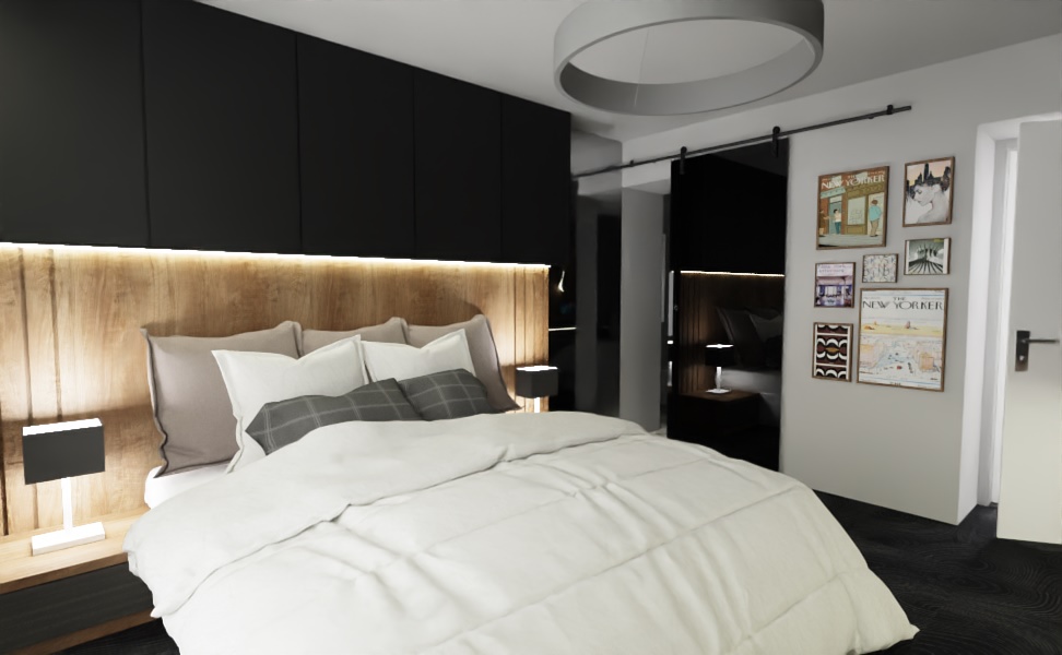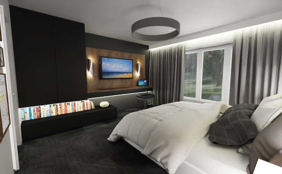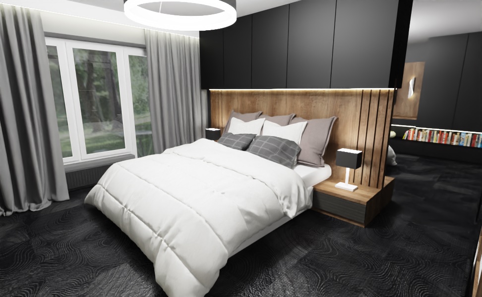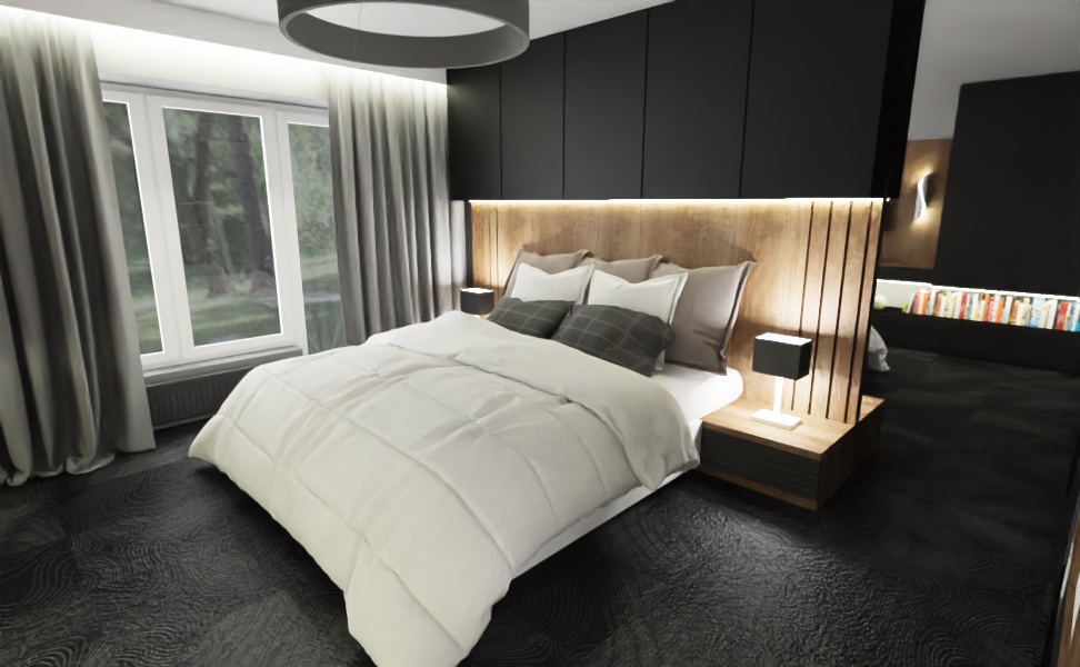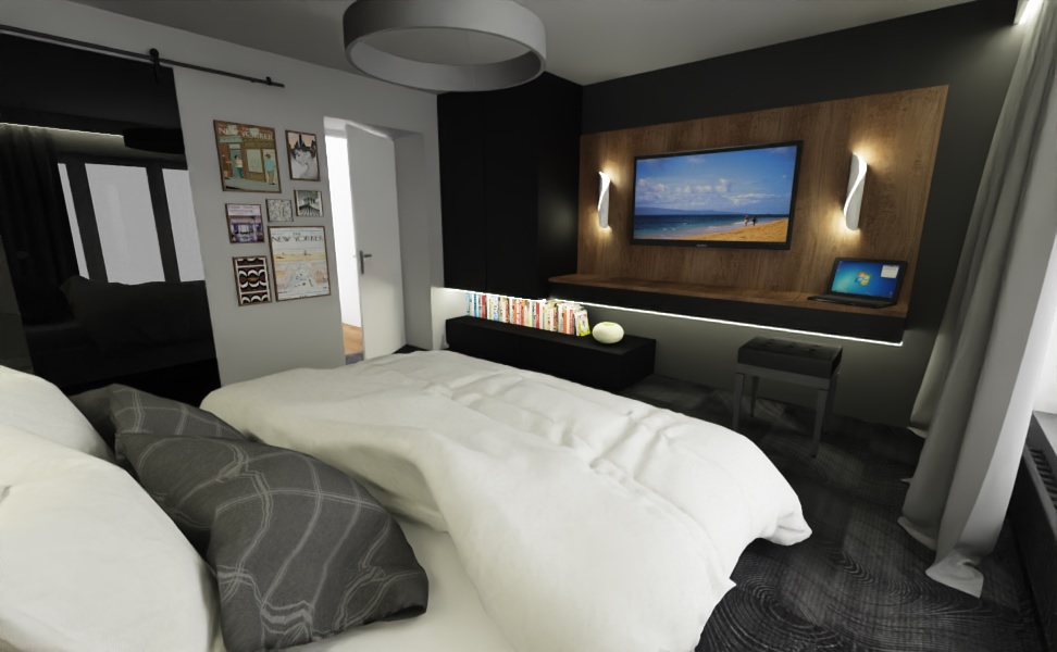 W przytulnej sypialni... z małym kącikiem do pracy, nie rzucającym się w oczy, żeby nikt nie miał wątpliwości jaką funkcję spełnia to pomieszczenie...