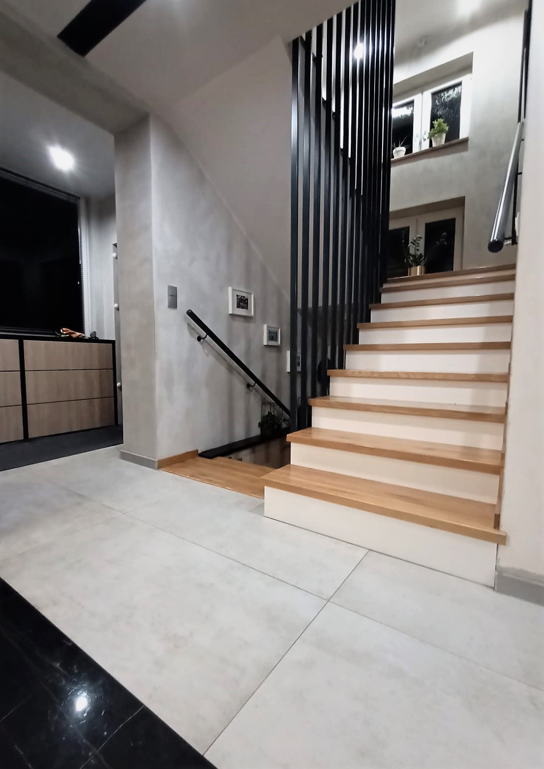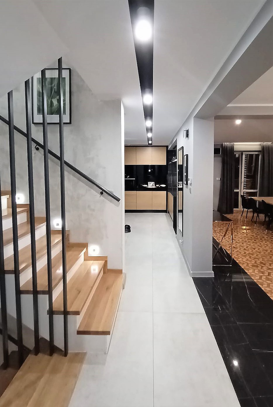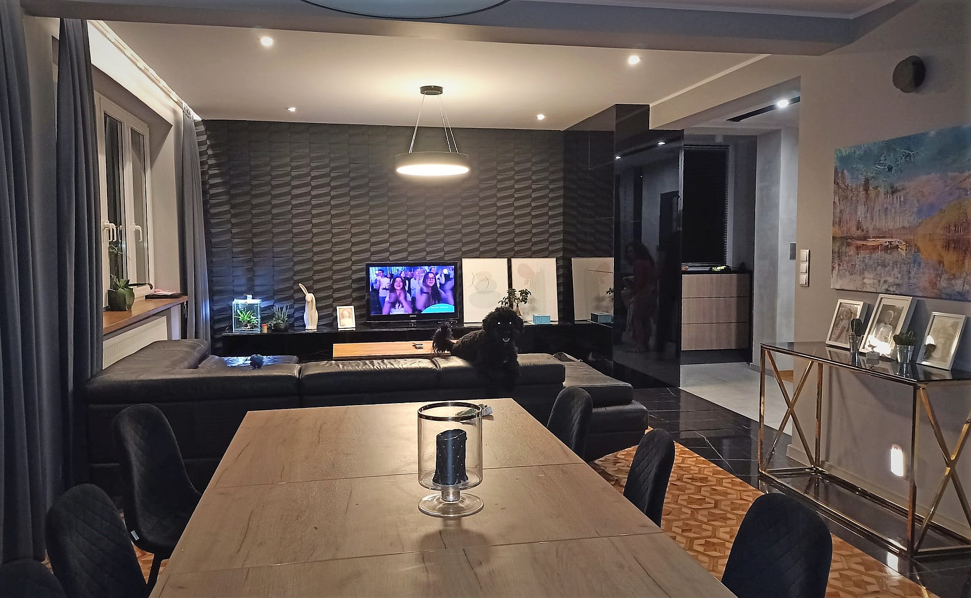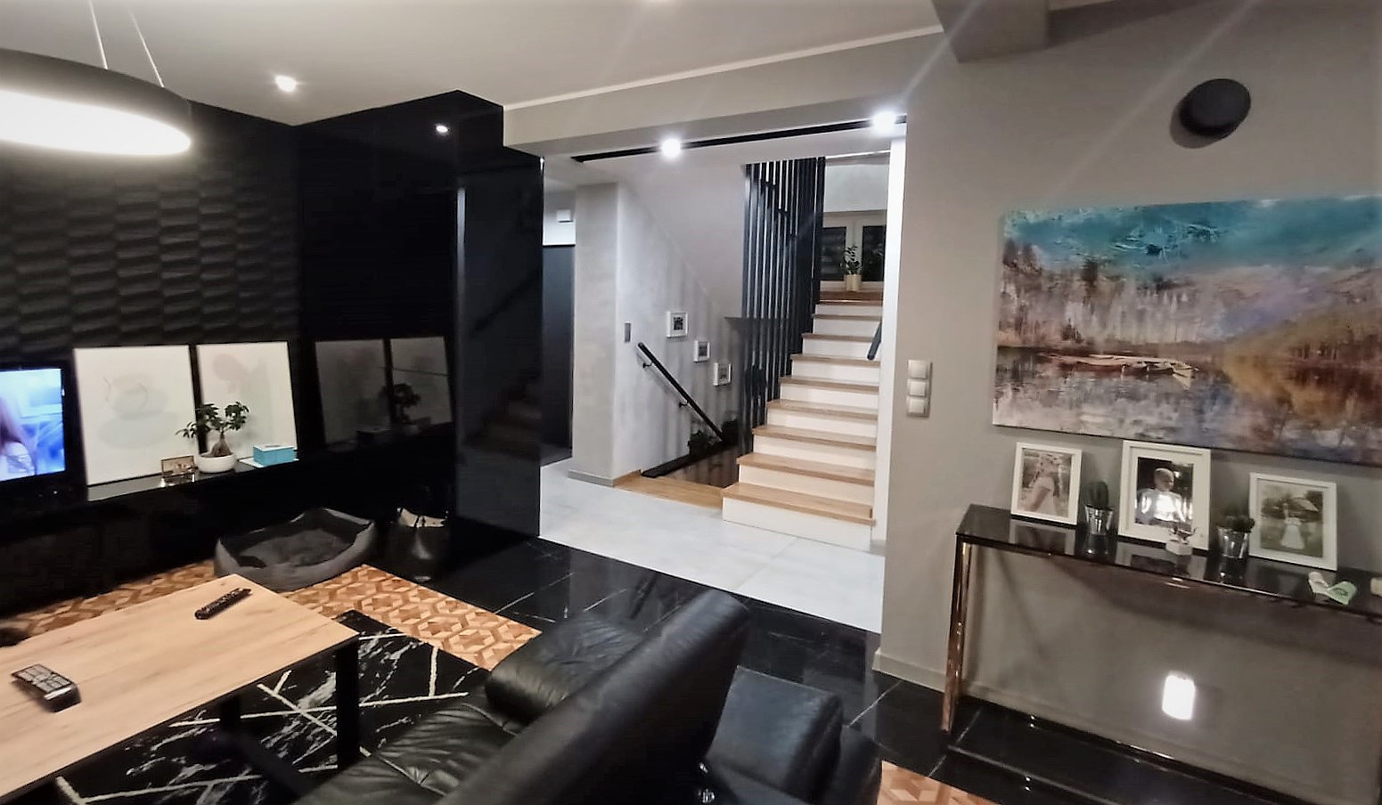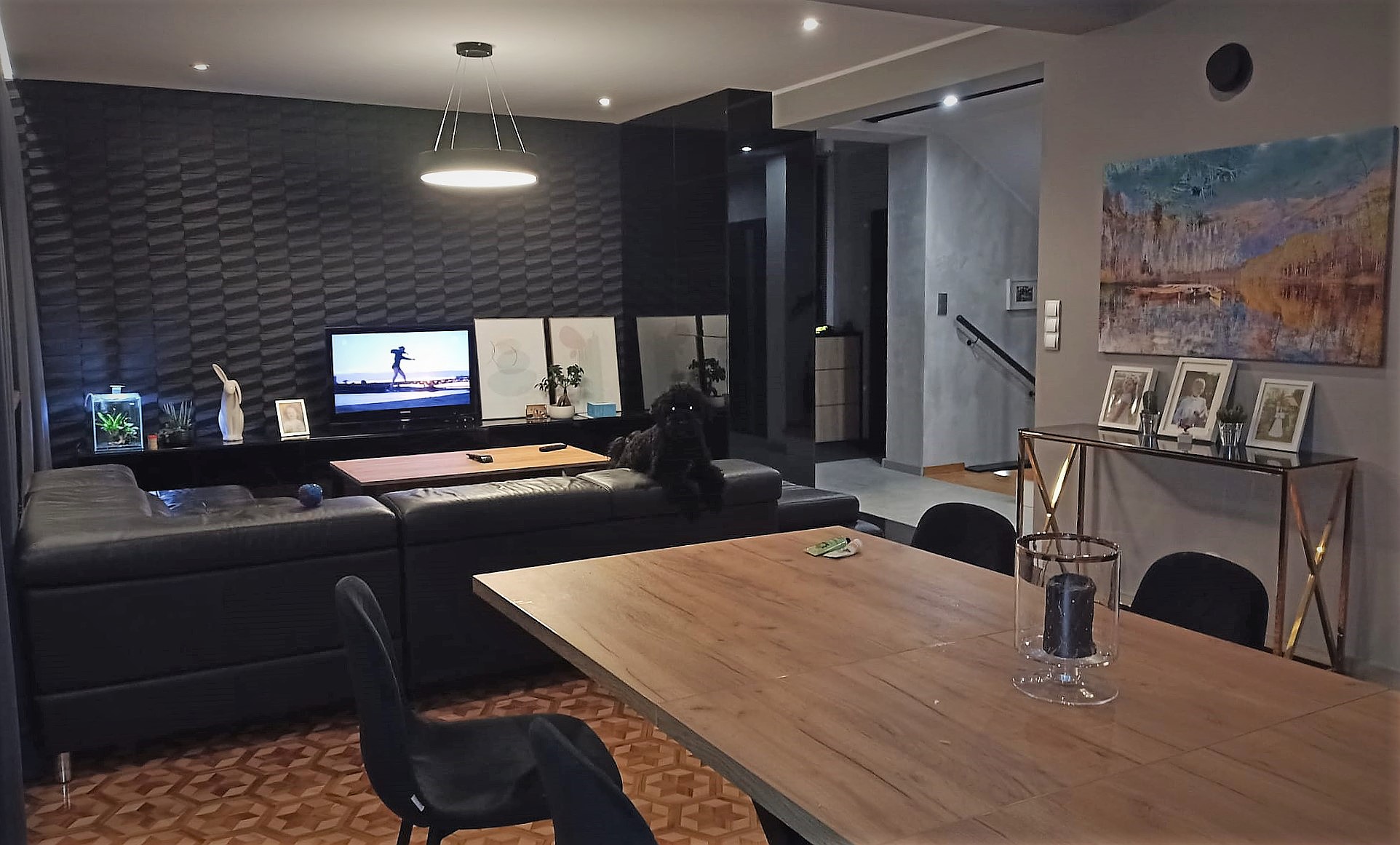 ...czyli dom z pazurem. Właściciele remontowali "kostkę" z lat 70tych. Zależało im na zachowaniu starego pięknego parkietu i dużej czarnej kanapy, otwarciu przestrzeni i spójności kolorystycznej. Chcieli by wnętrza miały charakter i były nowoczesne. Pracy było mnóstwo, od piwnicy aż po strych, burzyło się i kurzyło ale najważniejsze, że efekt końcowy zadowolił klientów :) Oto kilka zdjęć z realizacji: