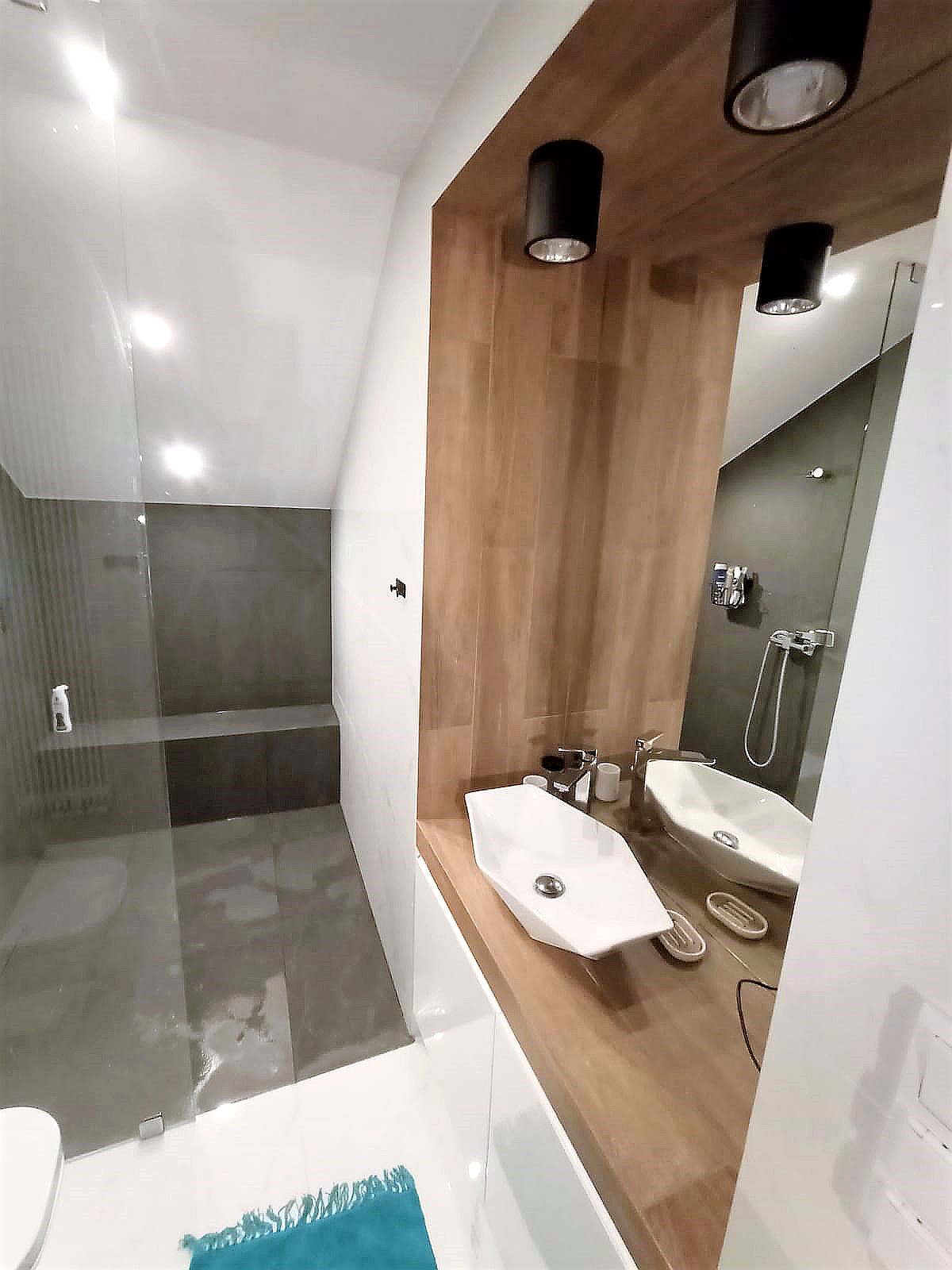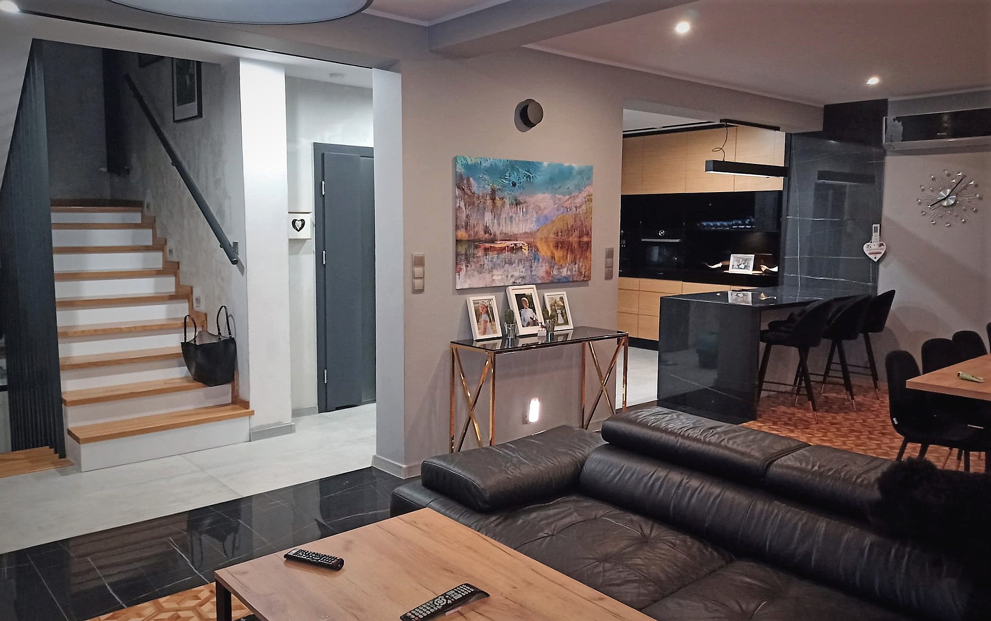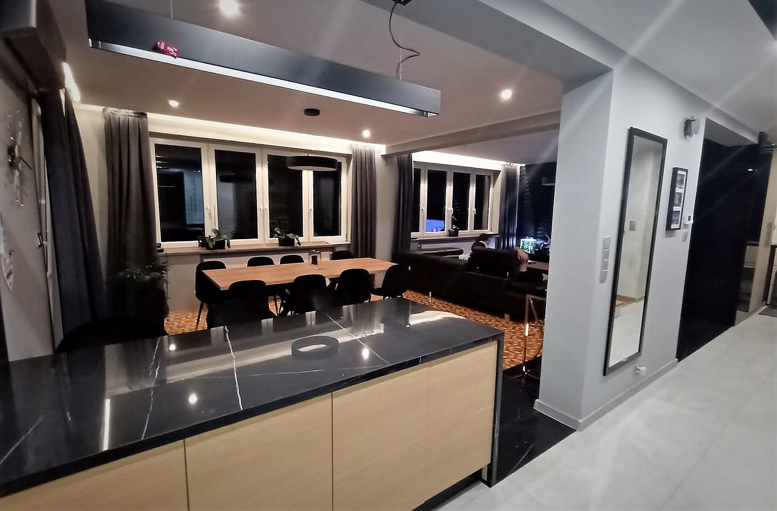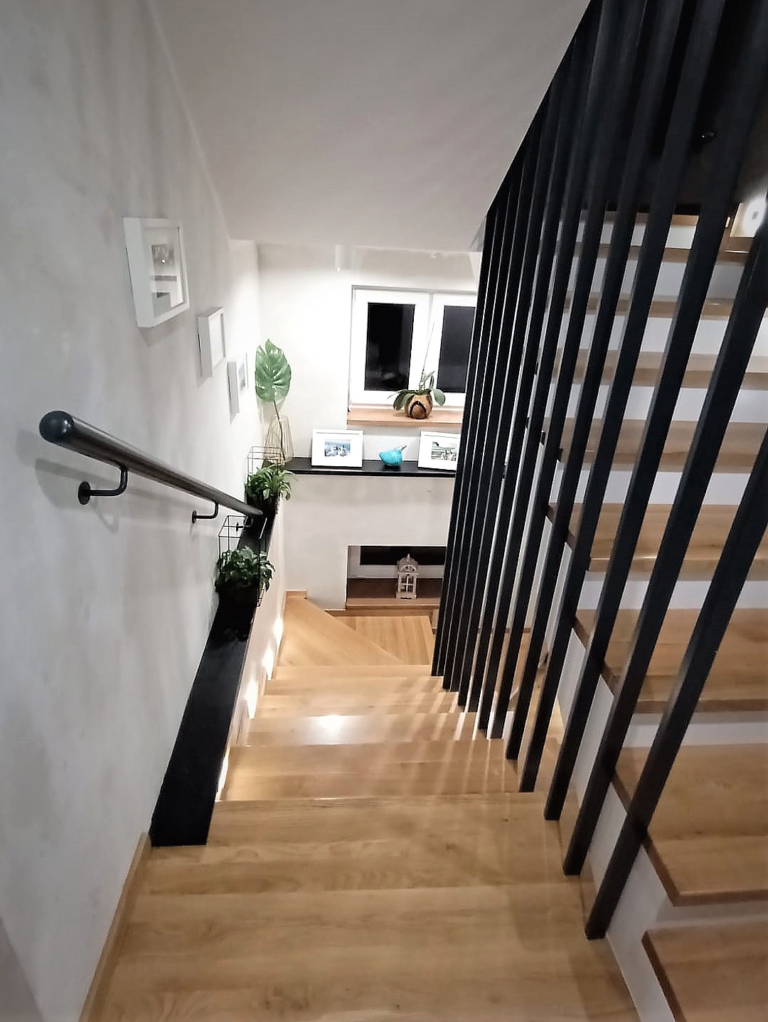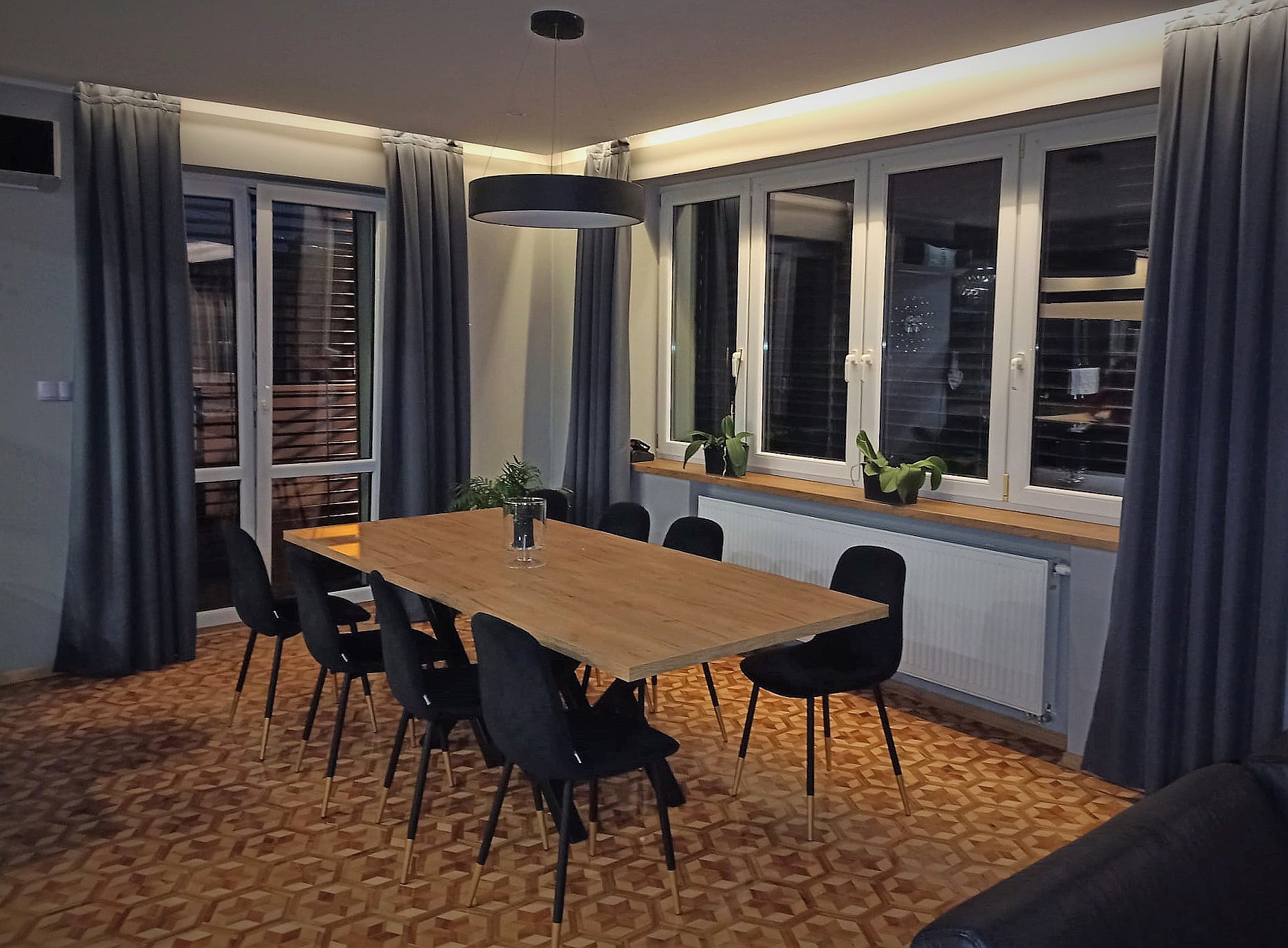 ...czyli dom z pazurem. Właściciele remontowali "kostkę" z lat 70tych. Zależało im na zachowaniu starego pięknego parkietu i dużej czarnej kanapy, otwarciu przestrzeni i spójności kolorystycznej. Chcieli by wnętrza miały charakter i były nowoczesne. Pracy było mnóstwo, od piwnicy aż po strych, burzyło się i kurzyło ale najważniejsze, że efekt końcowy zadowolił klientów :) Oto kilka zdjęć z realizacji: