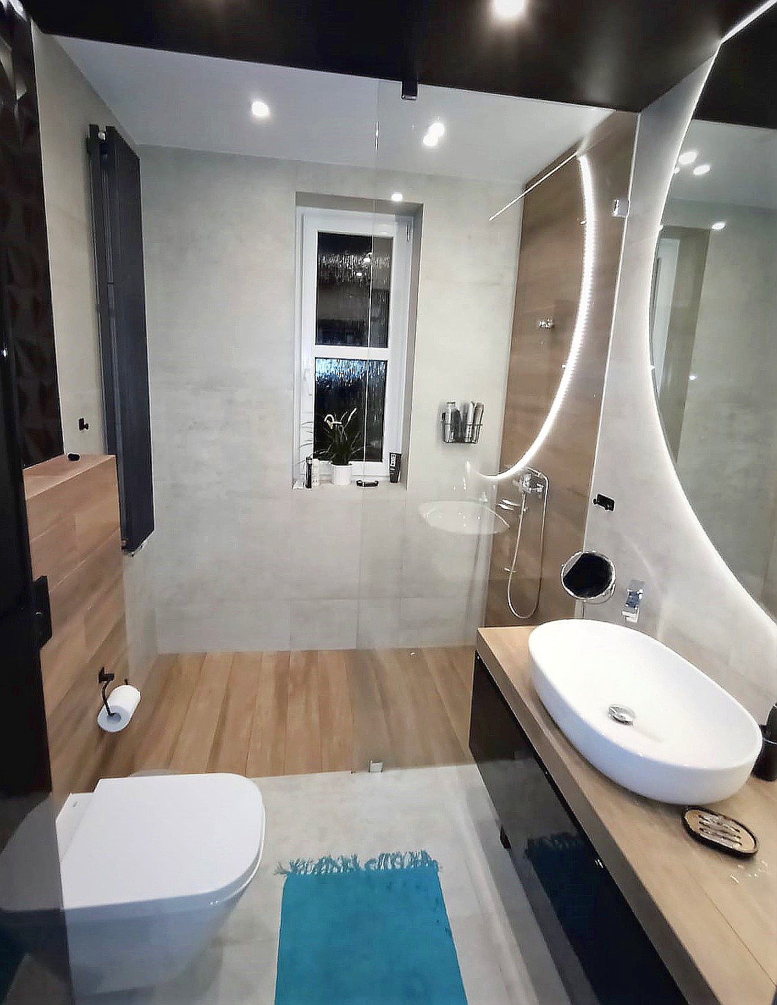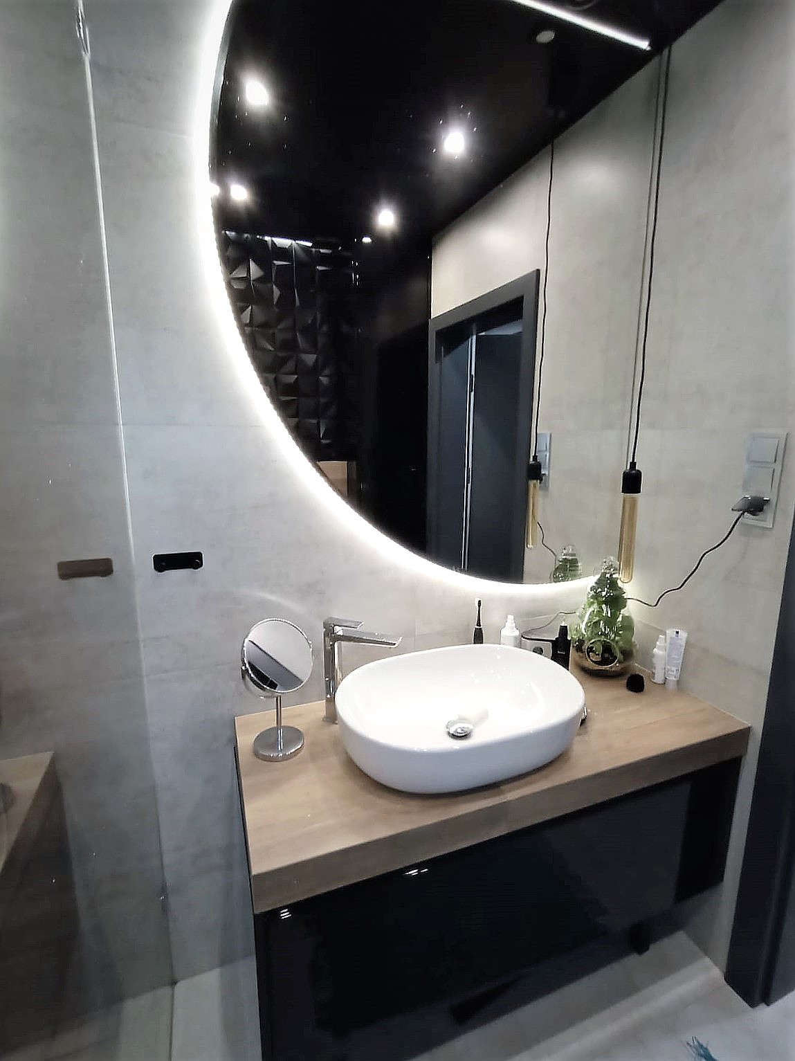 Nie bójmy się czarnego koloru!! Ciemna łazienka nie musi być ponura! Duże lustro, nastrojowe oświetlenie i odbijające światło powierzchnie sprawią, że łazienka stanie się nastrojowa i przytulna. Ale też będzie oryginalna i z pazurem.