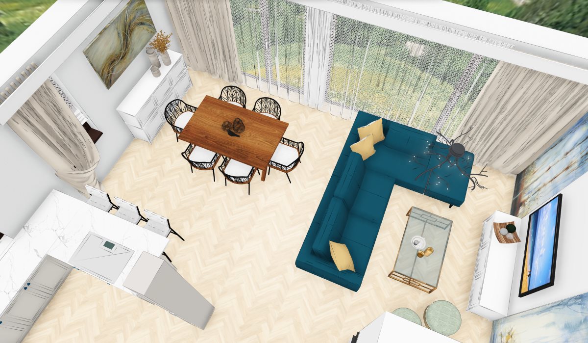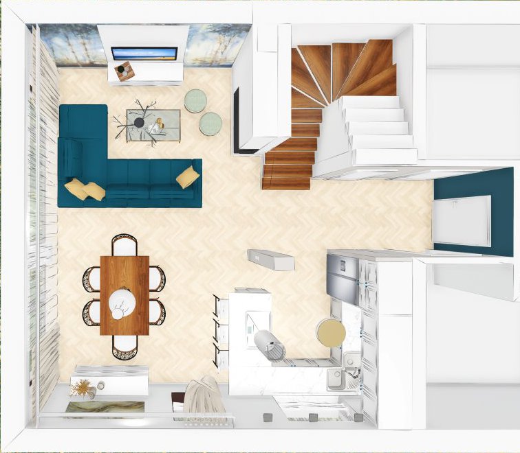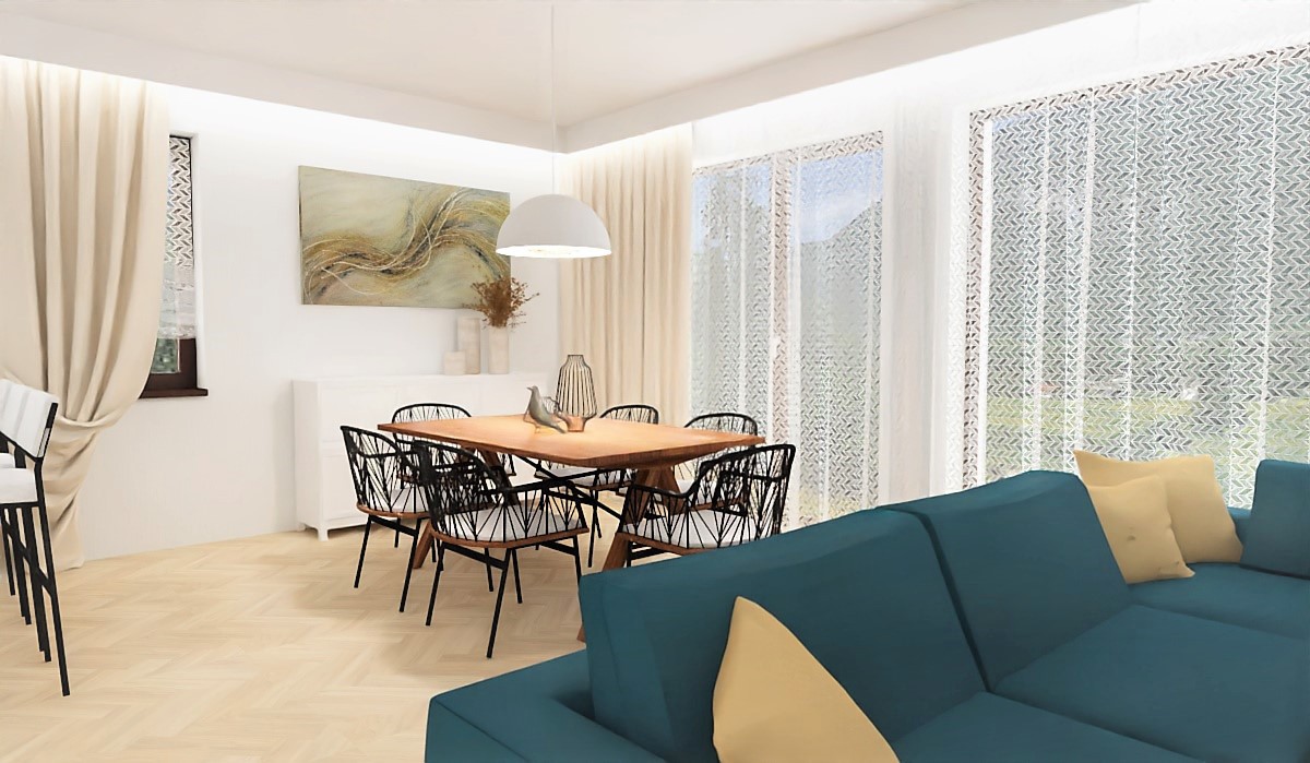 ...do salonu, a na pewno pomoże Ci się zrelaksować we własnych czterech kątach. Propozycja przestrzeni dziennej w domku jednorodzinnym.